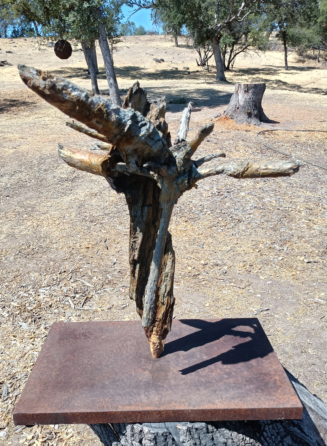 Bronze sails float on marble waves. This piece was originally built as an idea for a "water element" in friends' yard. They couldn't pay for it. I changed it up, kept the piece, and almost put it in a pond. It now lives on an Oak high stump.