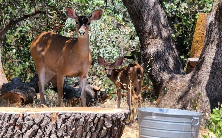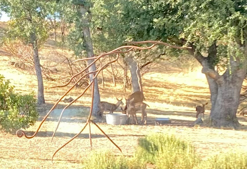 We've removed brush for fire mitigation. We are aware that this brush is browsing grub for deer. There is still plenty of brush in the canyon, but we put out food for the herd anyway. It is a treat to have these families come through, often while we're eating our evening meal. Rural entertainment.