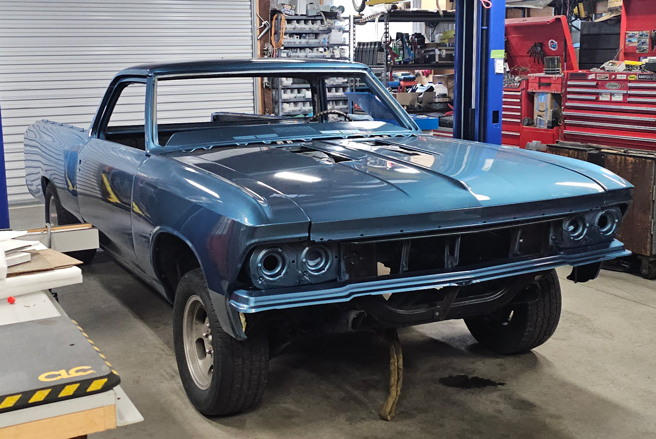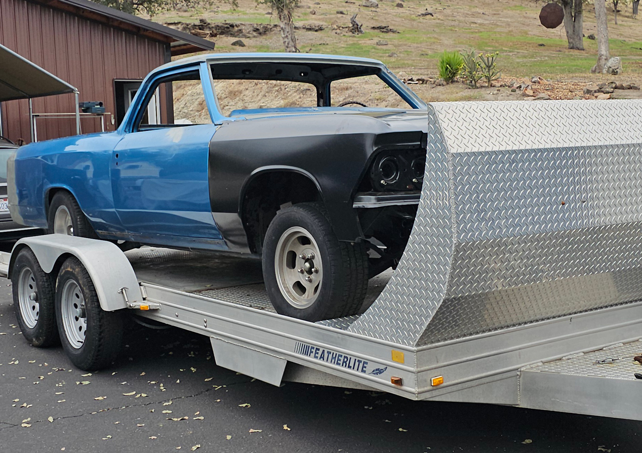 With the repairs done (I hoped), a neighbor connected me with Tino, who is well-known around Shasta County for excellent paint jobs. Once he had a window of time available, I loaded the ElCo onto the Featherlite and carted it over to the shop. Within a week I got the call to come pick-up the newly painted 1966 ElCamino.