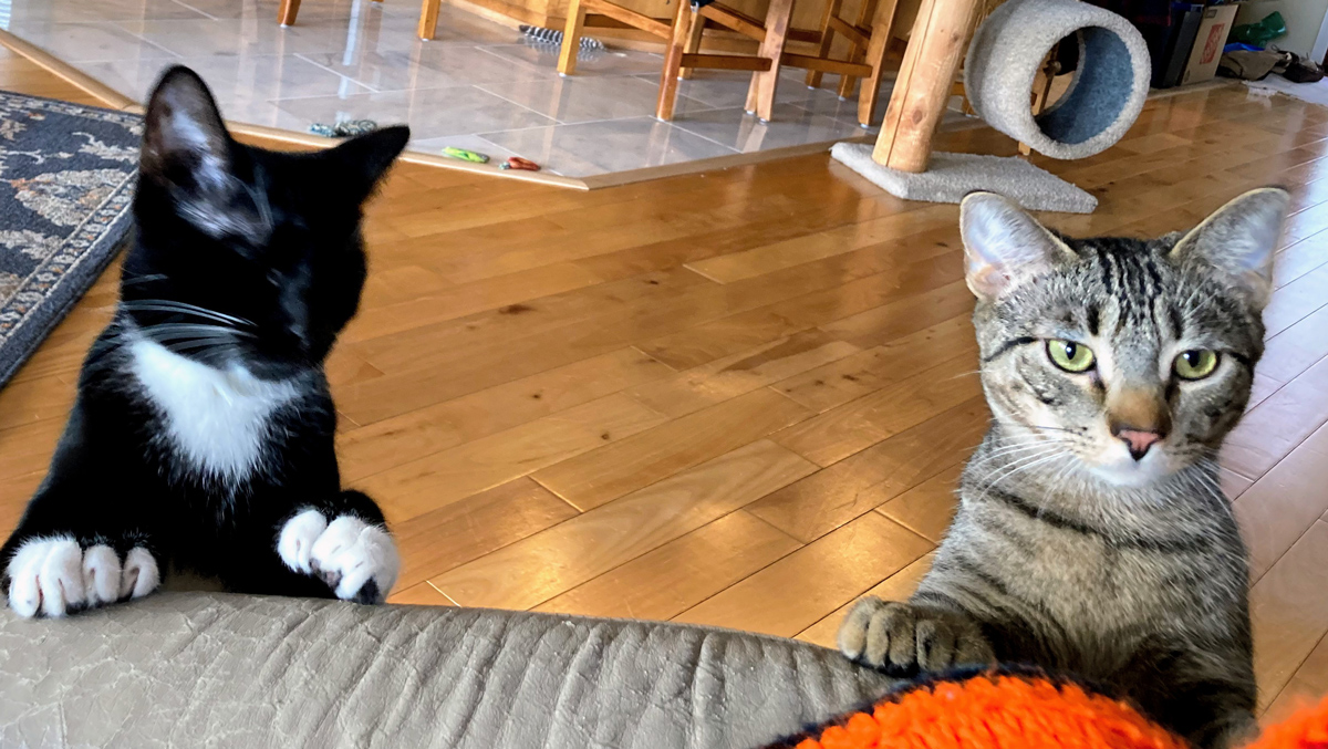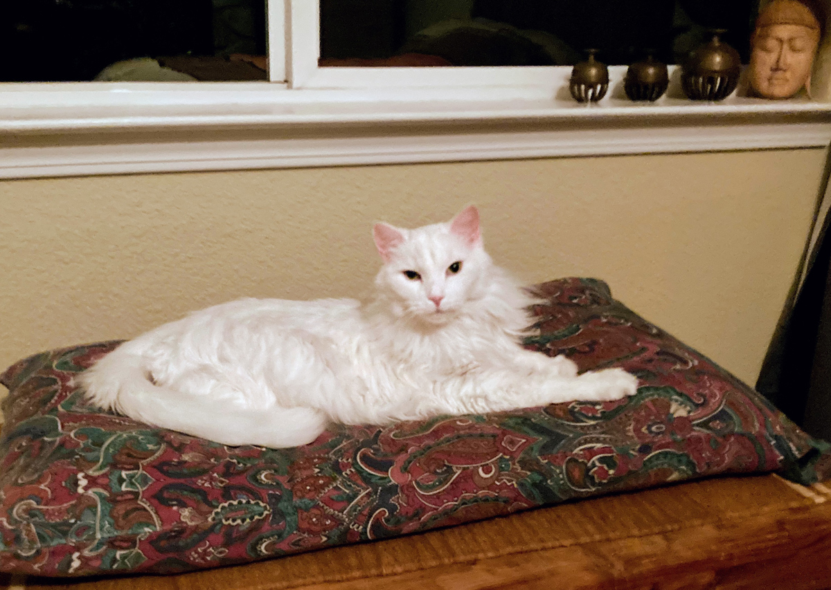 Blondie, well over 14 years old, came to us via a storm drain near the 580 freeway in San Leandro, CA. She has been a surrogate mom to the several kittens we've brought home. We haven't had the "longevity" fortune with our kittens. They've had incurable health problems, but have come to us and taught us to "let go". Blondie has always cared for them.