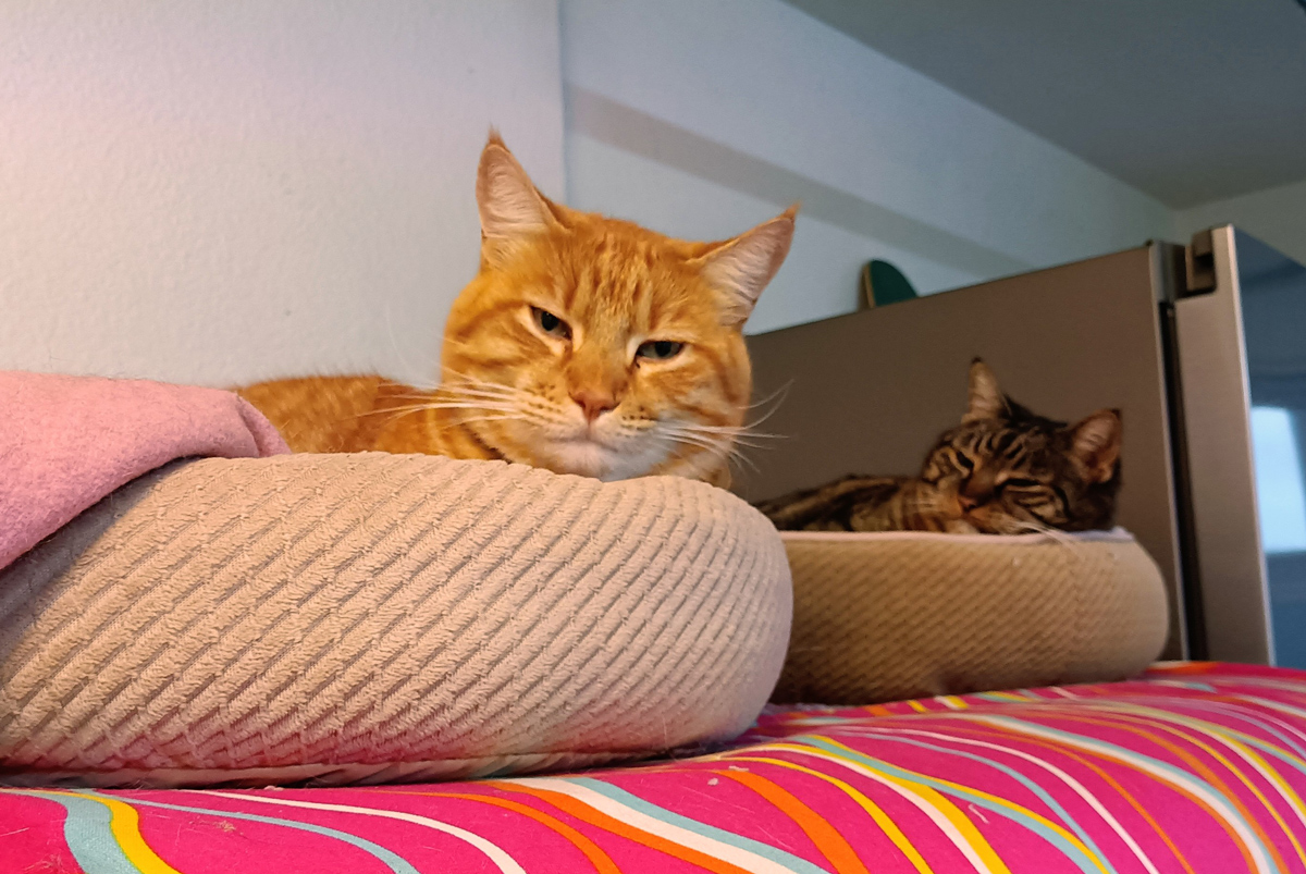 April 2021, a little over four months in to living in our new space, we got a call from a neighbor asking us if our cat was missing. We checked and everyone was indoors. The following day a friendly tabby was wandering around our place. Michael sat down in the back and this cat climbed onto his lap. After checking for a chip at the vet, and no responses from posted signs and online notices, we named her Rey. The force was strong in her.